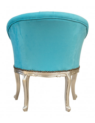Chair Armchair French style Louis XVI, solid beech wood, hand-carved length 68 cm, depth 67 cm, height 82 cm. Natural treated finish, slightly patinated silver Shabby. Handcrafted upholstered seat and backrest.