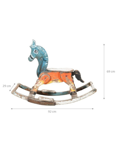 Rocking horse 92 cm long, 29 cm deep and 69 cm high made of wood with an antique, handmade finish. Can be used as a game and an excellent furnishing accessory.