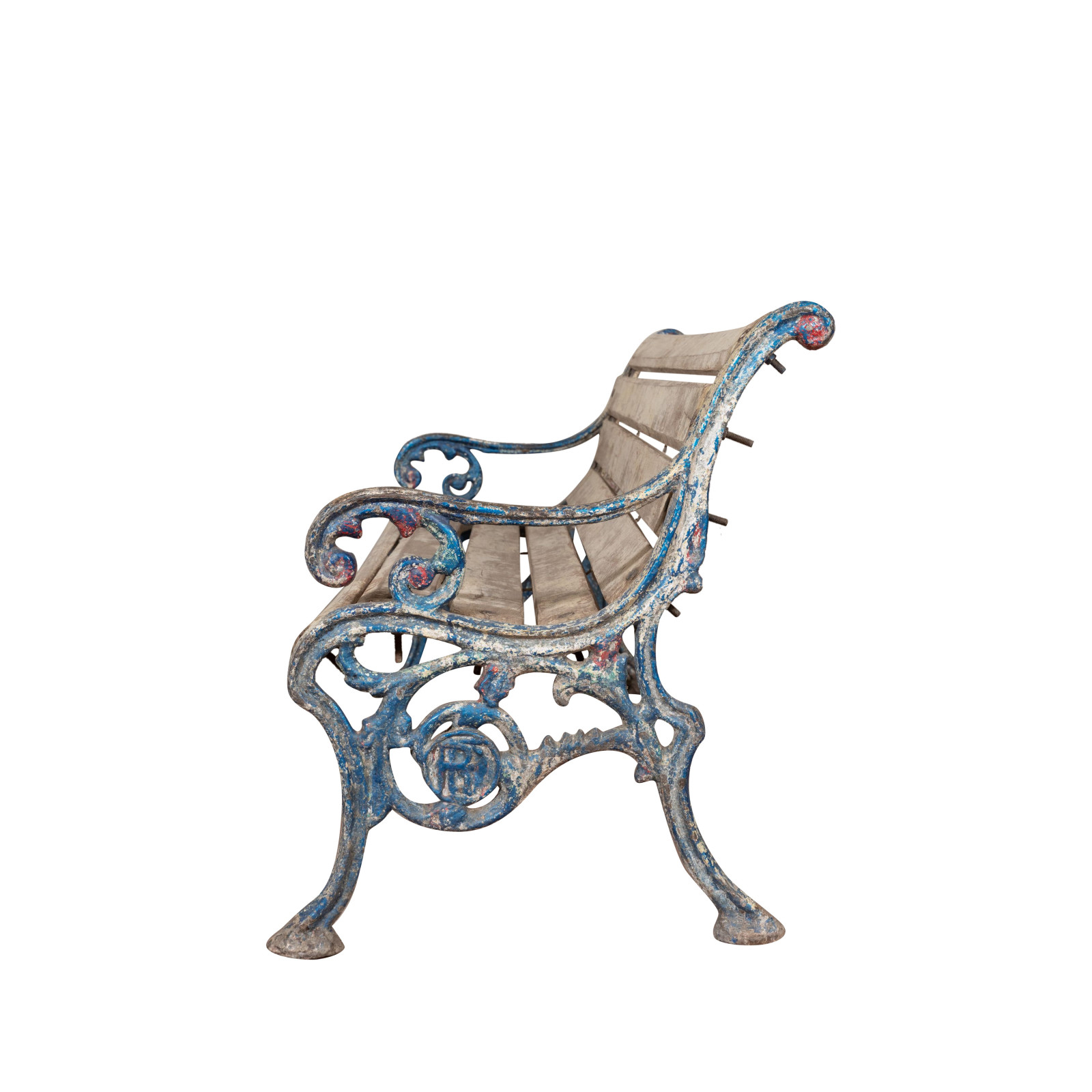 Very sturdy and stable bench made of solid wood and cast iron with dimensions width 190 cm, depth 65 cm, height 80 cm. Elegantly furnishes any room. Ideal for outdoors.