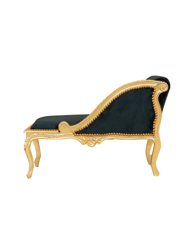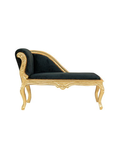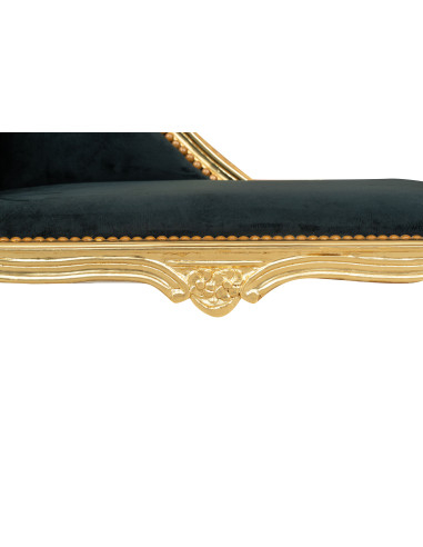 French Louis XVI style Pauline armchair, solid beech wood, carved and hand-finished with gold leaf patina and black seat. Width 94 cm, depth 48 cm, height 68 cm. Hand-crafted upholstered seat and back.