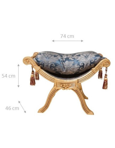 W74xDP46xH54 cm sized Louis XVI French style solid beech wood made hand carved and patina gold leaf finished footrest faldstool bench Hand-padded seat