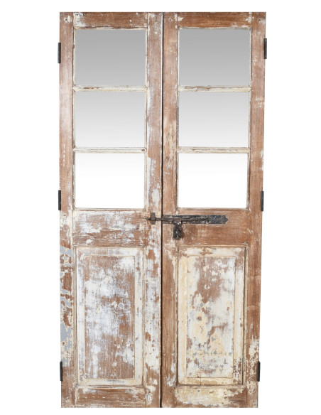 Old and antique medieval solid wood and iron door for interior or exterior use with glass