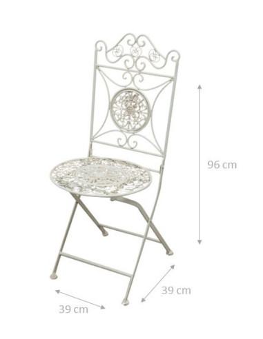 Outdoor garden dining folding Chair in full wrought white rust finish diam.39x96 cm
