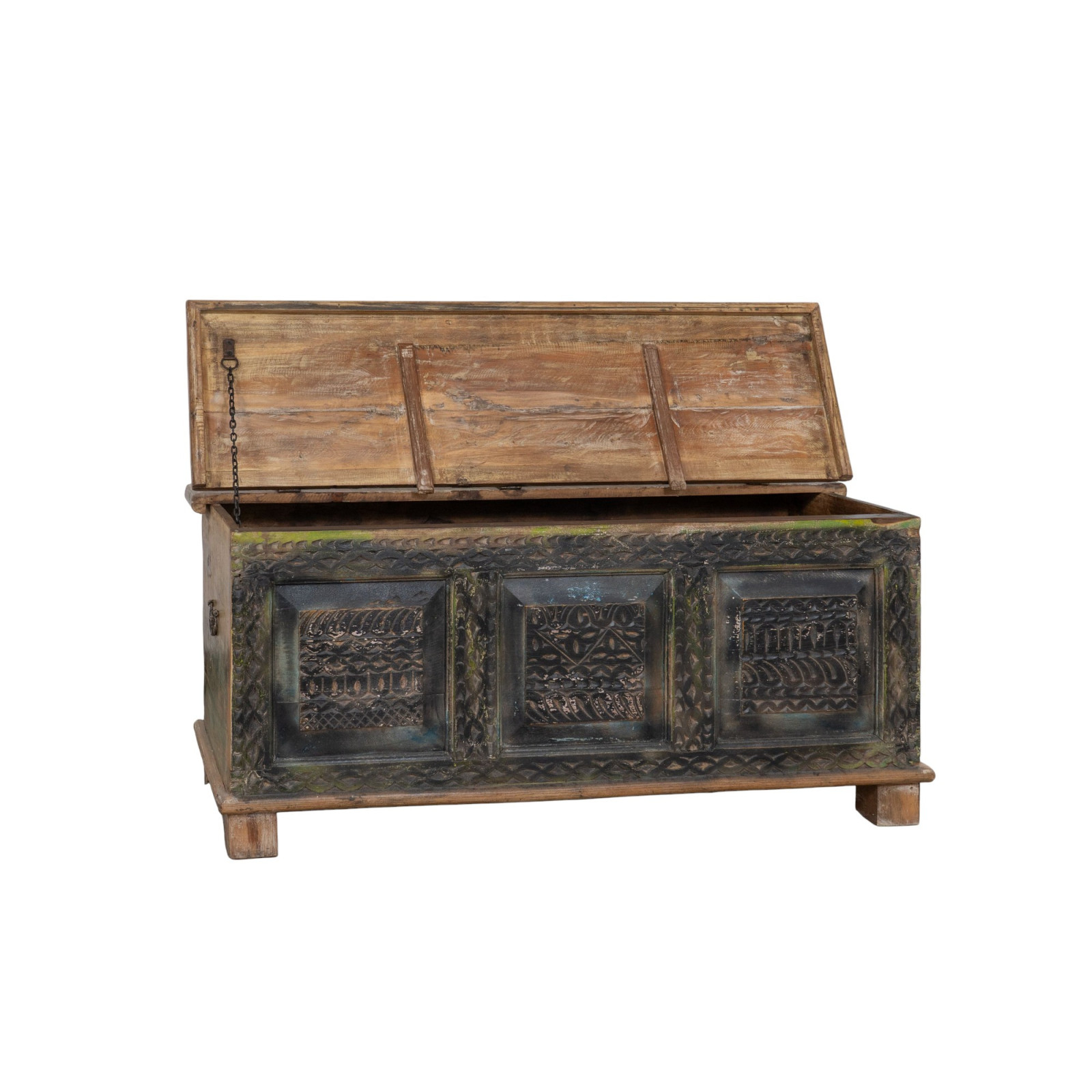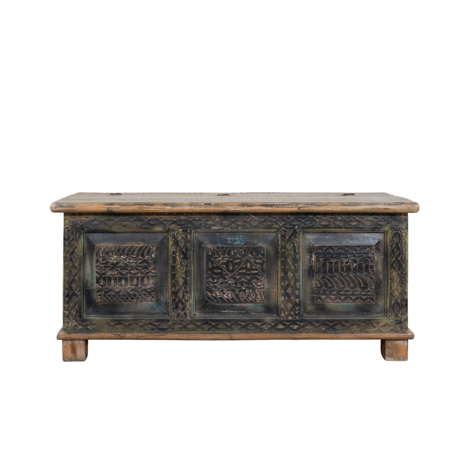 Chest made of reclaimed solid wood, measuring 123 cm wide, 52 cm deep and 54 cm high. Solid and functional, it is ideal for lovers of antique furniture and wood. Each piece of furniture is unique.