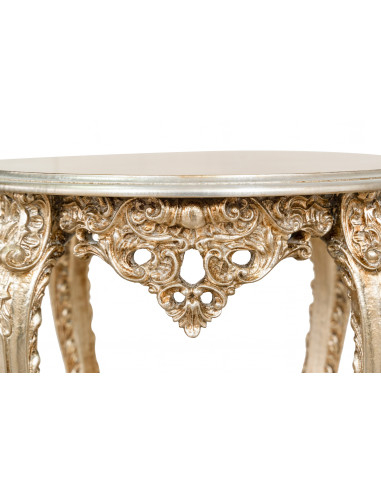 ROUND PANCHETTO TABLE IN ANTIQUE SILVER LEAF FINISH MADE IN ITALY