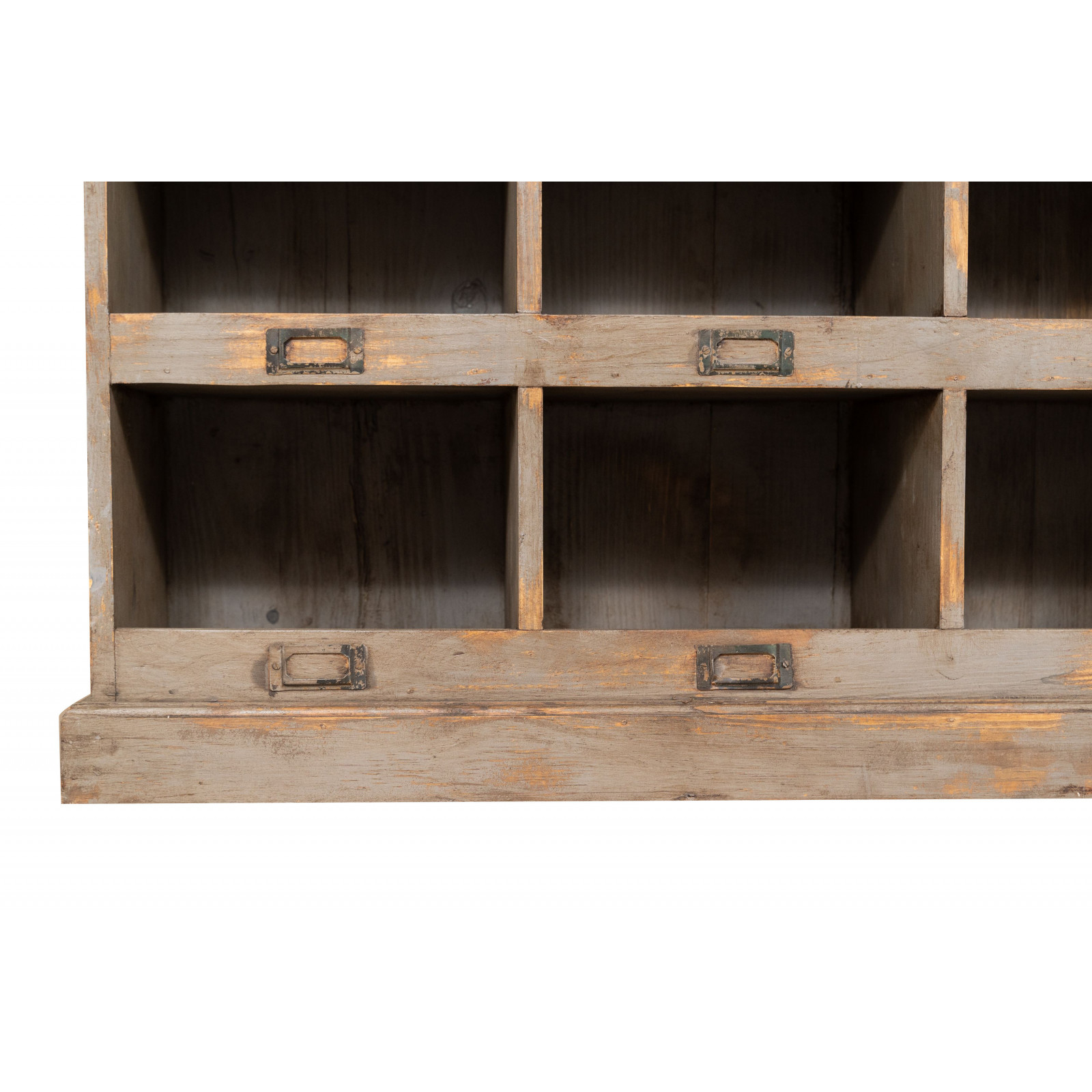Imposing and spacious, this piece of furniture consists of three blocks measuring L150xD34xH205 cm, made of solid oak, and has 12 double glass doors. Thanks to its multiple shelves, it can be used as a bookcase or display cabinet, adding a touch of country style to any room.