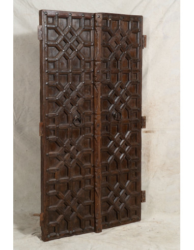 Solid wood and iron front door for interior or exterior use, old and medieval sliding