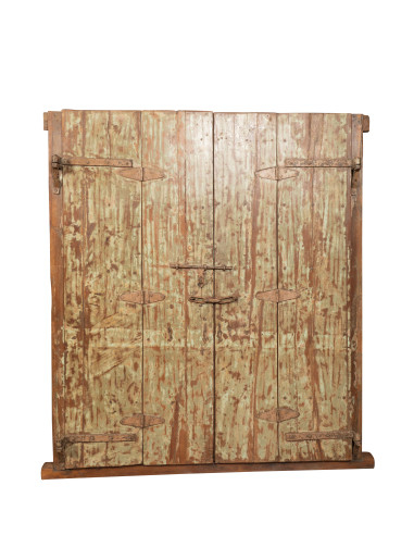 Solid teak antique door/gate with dimensions 194 cm length, 16 cm depth, 218 cm height. This door derives from the demolition and restoration of important old buildings. Finely restored and treated for exterior use, each door is a piece of true and unique antiques. All measurements refer to the maximum overall dimensions of the article.