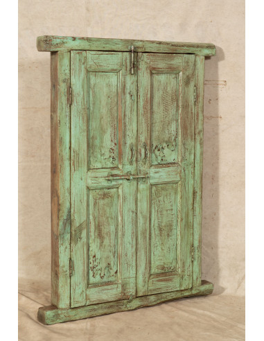 Antique window made of solid teak wood with dimensions length 90 cm, depth 8 cm height 150 cm. This window is the result of demolition and restoration of important old buildings. Finely restored, each window is a piece of true and unique antiques. All measurements refer to the maximum overall dimensions of the article