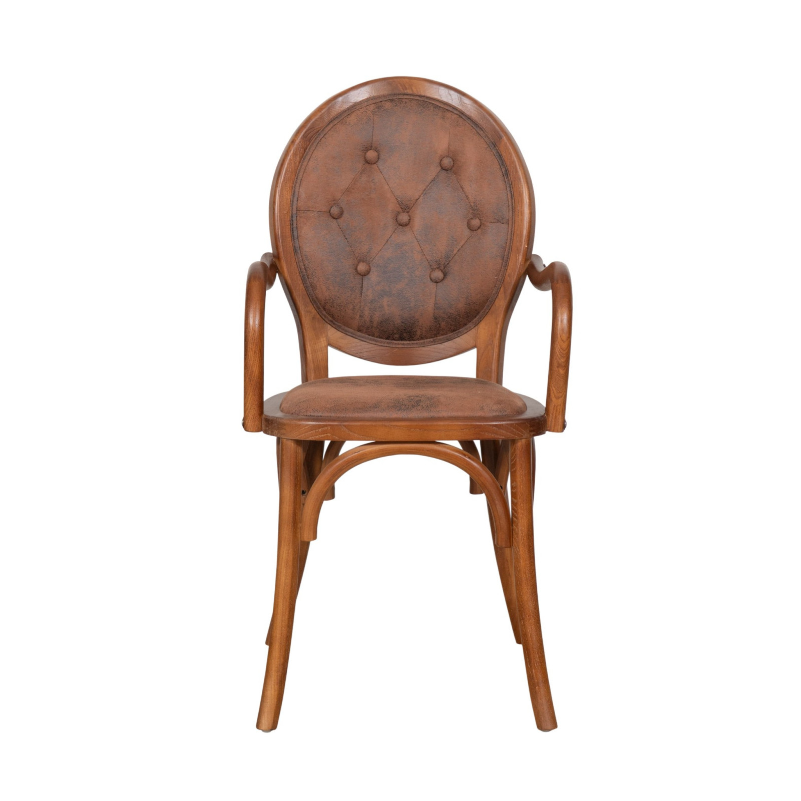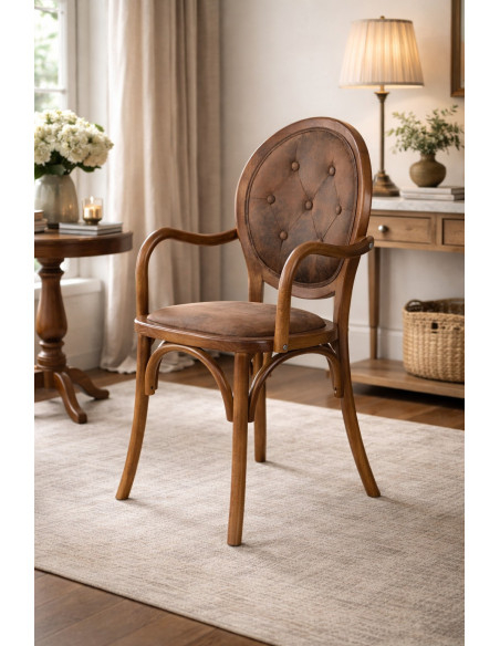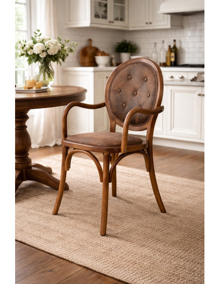 Solid wood chair with armrests and padded seat in dark walnut finish