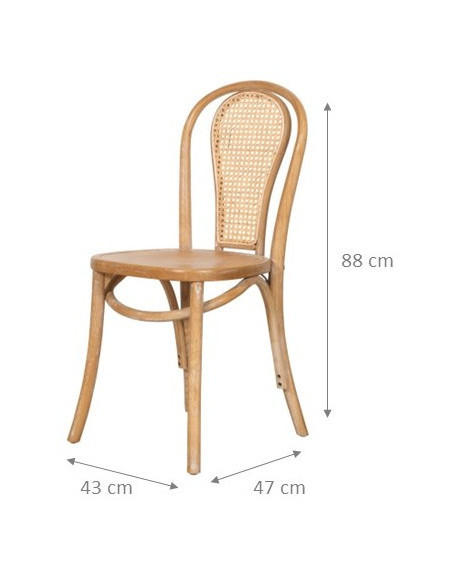 Solid wood chairs measuring 43 cm wide, 47 cm deep, and 88 cm high. The seat and backrest are handcrafted.