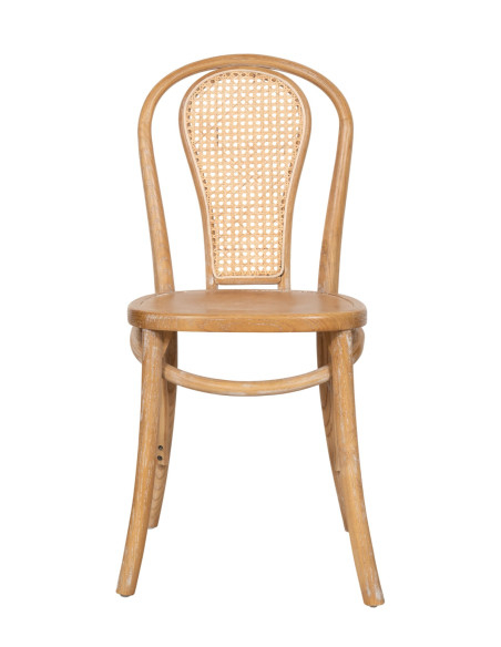 Solid wood chair with Vienna straw backrest in light walnut finish