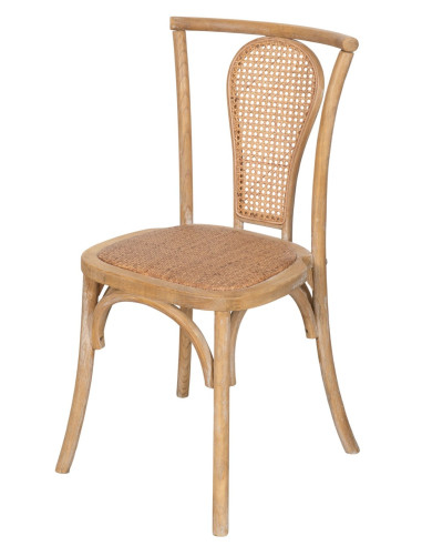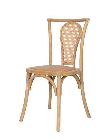 Solid wood chair with Vienna straw backrest in light walnut finish