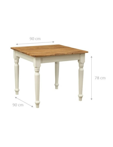 Square solid lime wood table. Suitable for furnishing any living with the timeless Country-style charm. Made in Italy craftsmanship is a guarantee of solidity, durability and quality. Measurements: length 90 cm depth 90 cm height 78 cm.
