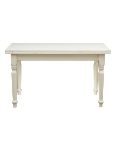 Entirely solid lime wood made extensible rectangular table with two practical extensions of 45 cm sized each that allow to extend it up to 185 or 230 cm. All the Country style charm is enclosed in this table thanks to the classic shapes, result of a scrupulous Made in Italy craftsmanship.Measurements: length 140 cm depth 80 cm height 80 cm. With an open stretcher: length 185 cm. Completely open: length 230 cm