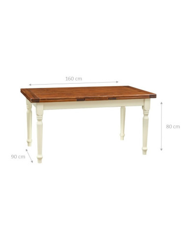 Rectangular solid lime wood extendable table up to 215 or 270 cm sized thanks to the two practical extensions of 55 cm sized each. Ideal for completing with a touch of Country charm any living, is guaranteed in solidity and quality by the unmistakable and scrupulous Made in Italy craftsmanship. Measurements: length 160 cm depth 90 cm height 80 cm. With an open stretcher: length 215 cm. Completely open: length 270 cm.