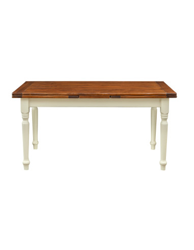 Country style solid lime woood antiqued white frame top walnut finish sized extendin table. Made in Italy
