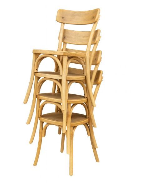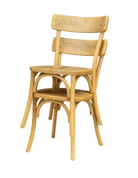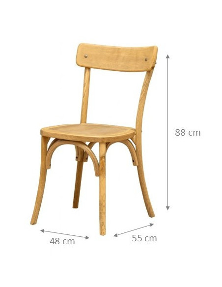 This Thonet-style chair, 48 cm wide, 55 cm deep, and 88 cm high, is made of solid ash with a crossed backrest. Its bistro design makes it ideal for furnishing any space or venue with a vintage feel, without sacrificing comfort.