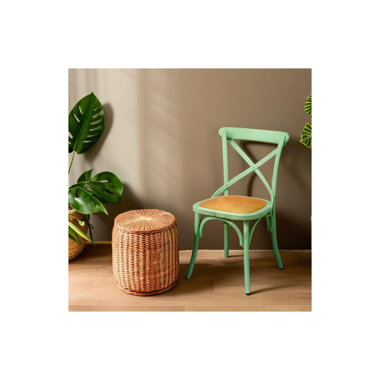 Chair width 48 cm, depth 52 cm, height 88 cm in Thonet style made of solid ash with crossed backrest and woven rattan fiber seat. Thanks to their bistro design, they are ideal for decorating any environment or room in vintage style, without sacrificing comfort.