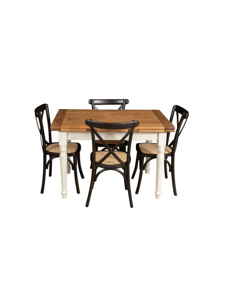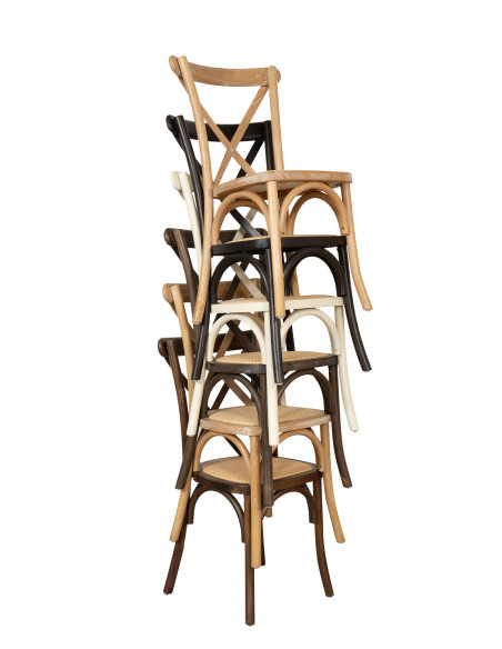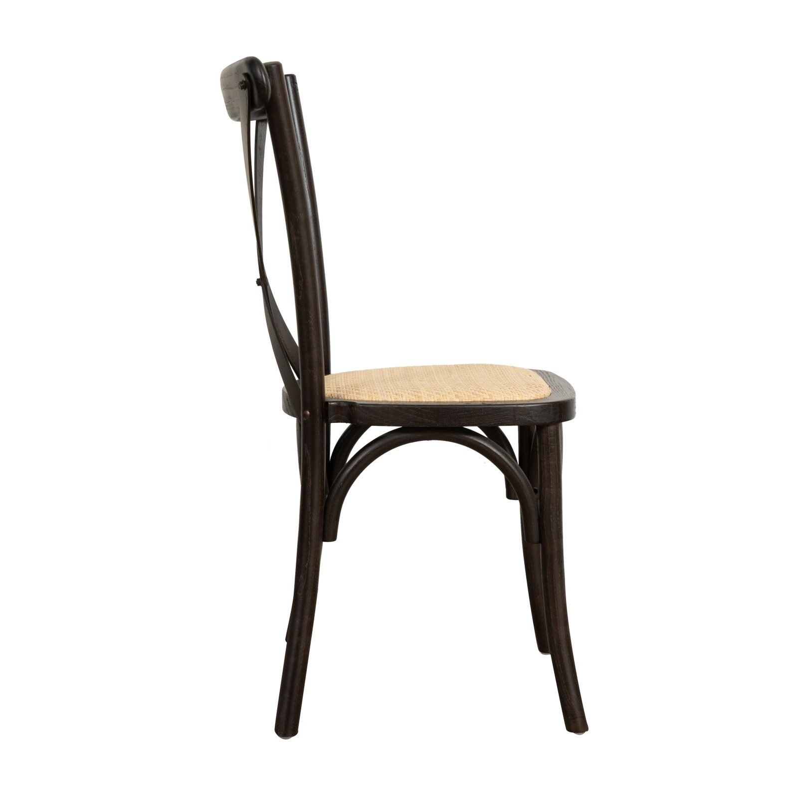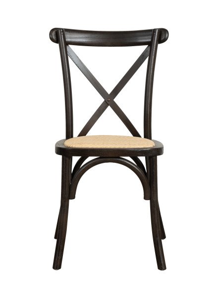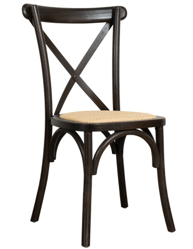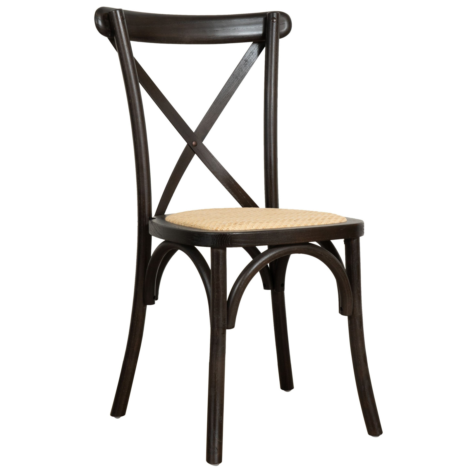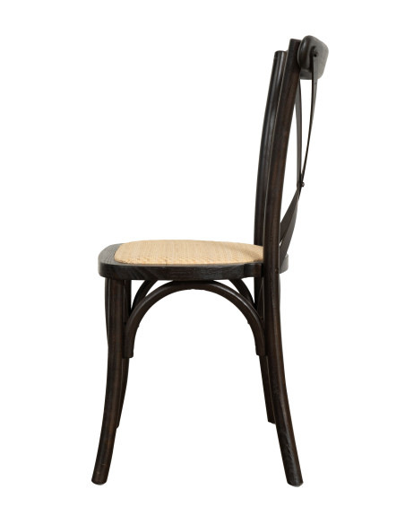 Thonet Cross chair in solid wood with black rattan seat, stackable