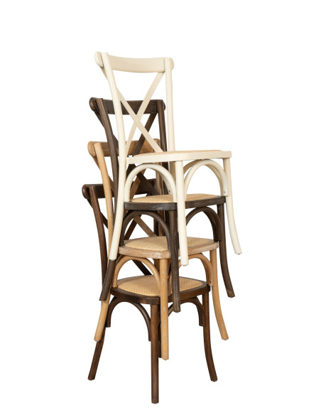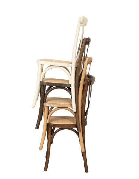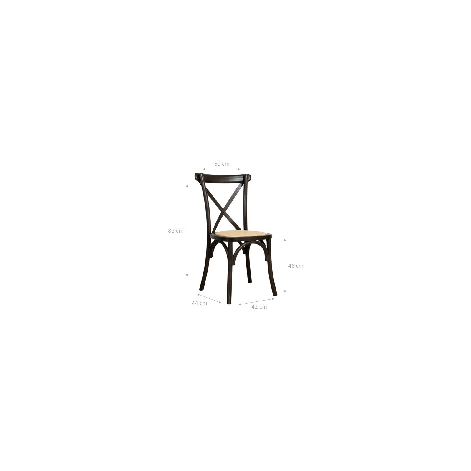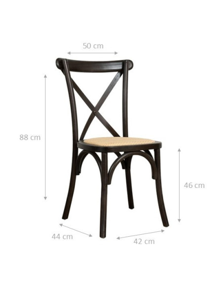 Chair with dimensions width 42 cm, depth 44 cm, height 88 cm in Thonet style made of solid ash with crossed backrest. Thanks to its bistro design, it is ideal for furnishing any room or venue in vintage style, without sacrificing comfort. The height from the floor to the seat is 46 cm.