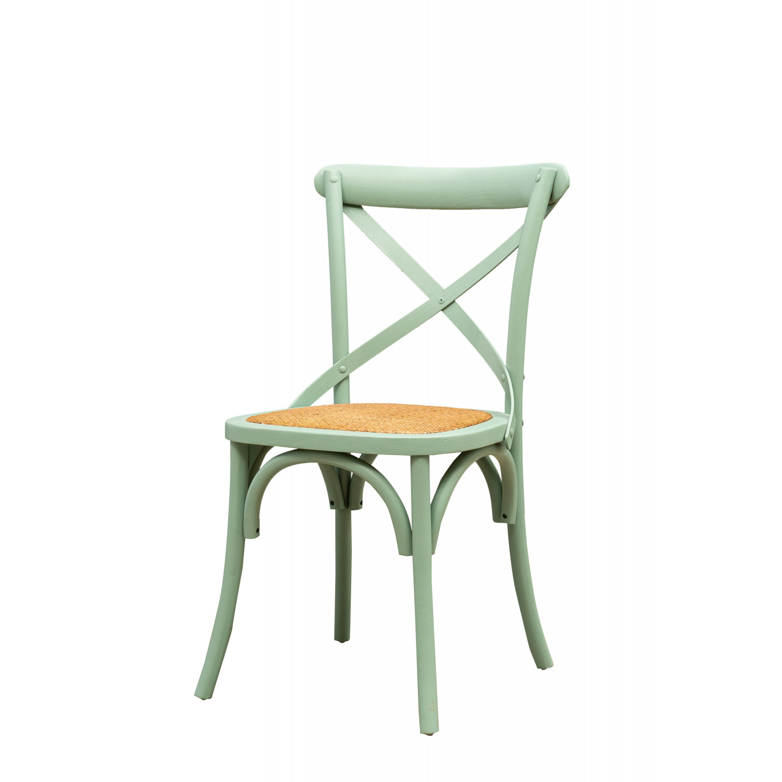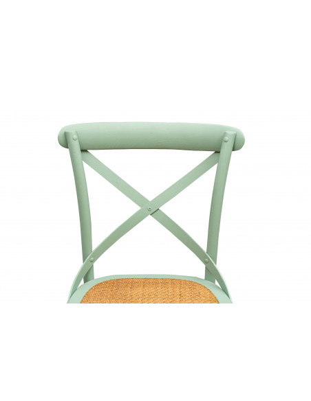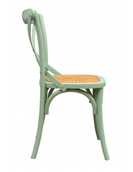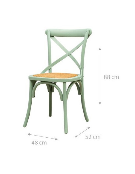 Chair width 48 cm, depth 52 cm, height 88 cm in Thonet style made of solid ash with crossed backrest and woven rattan fiber seat. Thanks to their bistro design, they are ideal for decorating any environment or room in vintage style, without sacrificing comfort.