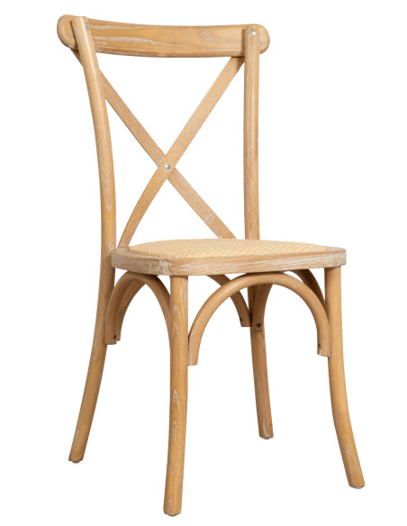 Thonet Cross chair in solid wood with natural finish rattan seat, stackable