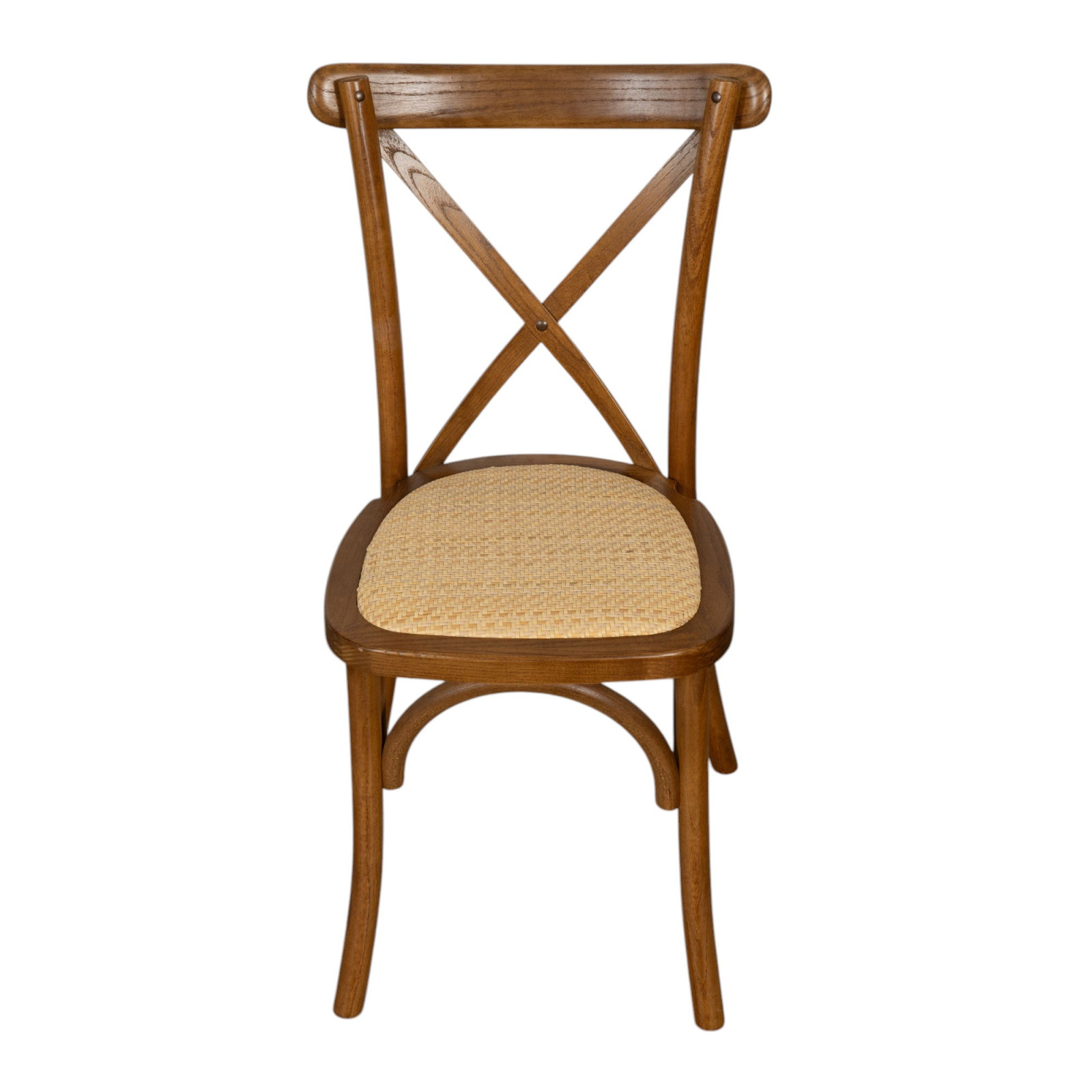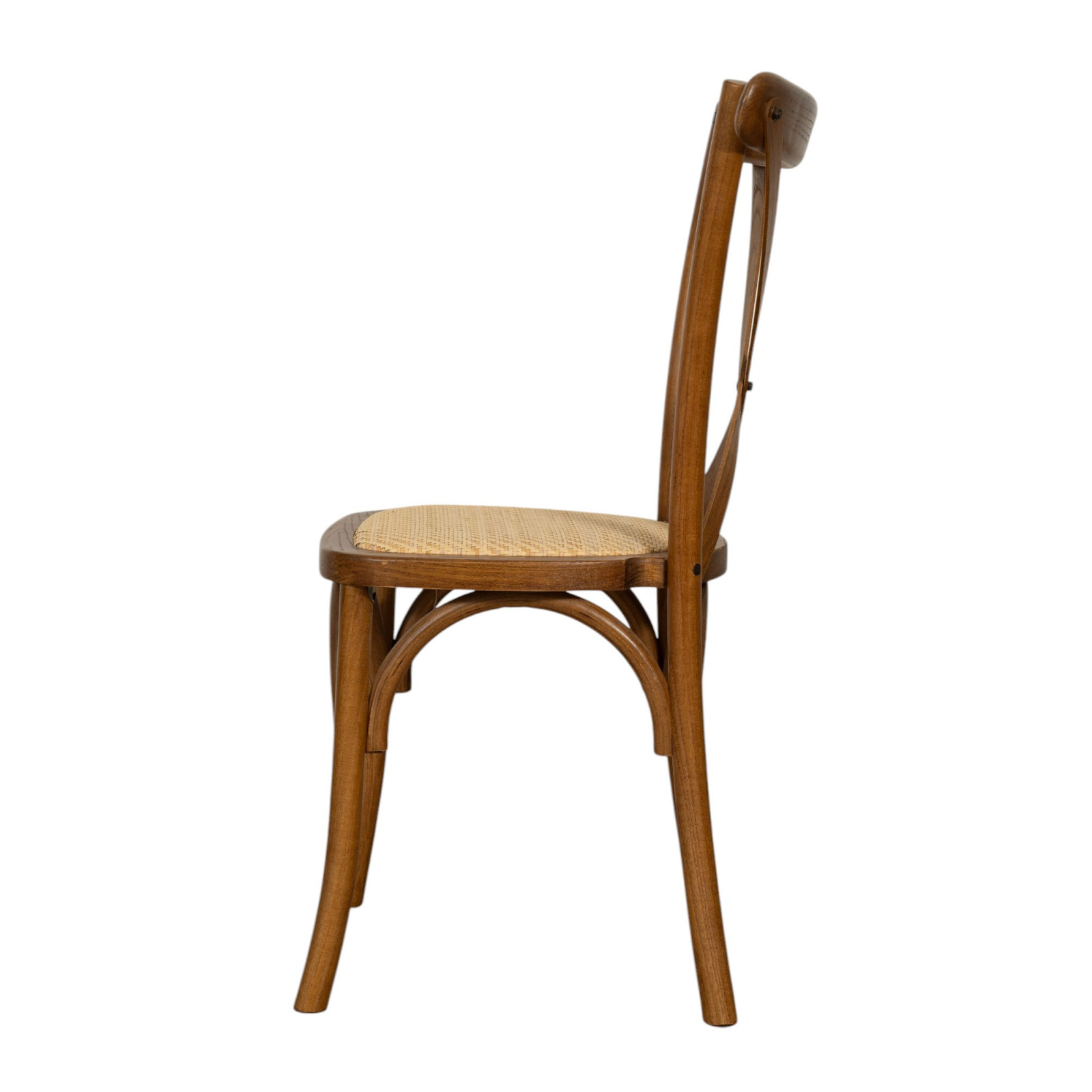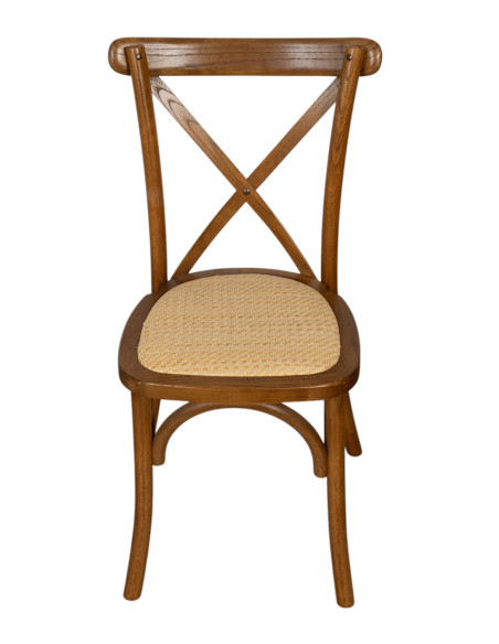 Thonet Cross chair in solid wood with rattan seat in aged wood finish, stackable