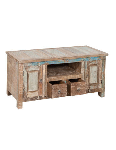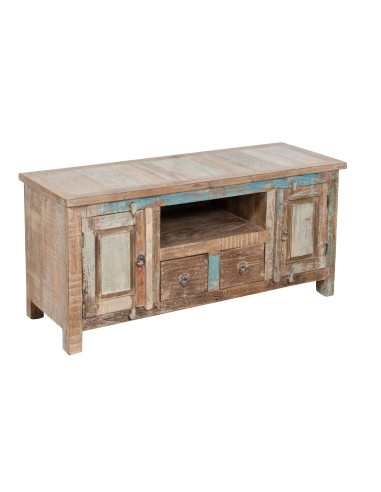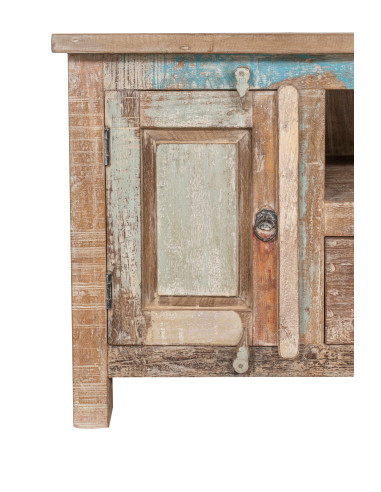 TV cabinet in solid recycled wood with antique finish
