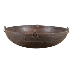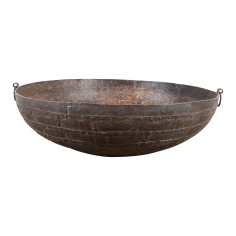 Old container / crucible with dimensions 109 cm diameter, 38 cm height. Made of wrought iron, worked entirely by hand, it can also be used as an original barbecue, brazier, planter, lily pad... or as a simple decoration. All measurements refer to the maximum size of the article.