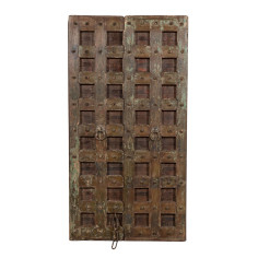 Antique solid teak door measuring 94 cm in length, 3 cm in depth and 191 cm in height. This door comes from the demolition and restoration of ancient and important buildings. Finely restored and treated for outdoor use, each door is a genuine and unique antique piece. All measurements refer to the maximum dimensions of the item.