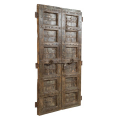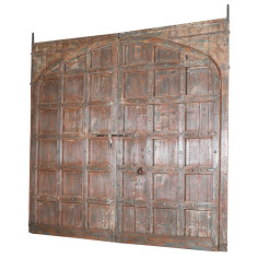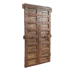 Antique solid teak door measuring 292 cm in length, 8 cm in depth and 270 cm in height. This door comes from the demolition and restoration of ancient and important buildings. Finely restored and treated for outdoor use, each door is a genuine and unique antique piece. All measurements refer to the maximum dimensions of the item.