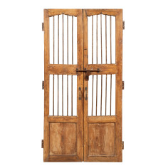 Solid teak antique door/gate with dimensions 118 cm length, 6 cm depth, 168 cm height. This door derives from the demolition and restoration of important old buildings. Finely restored and treated for exterior use, each door is a piece of true and unique antiques. All measurements refer to the maximum overall dimensions of the article.