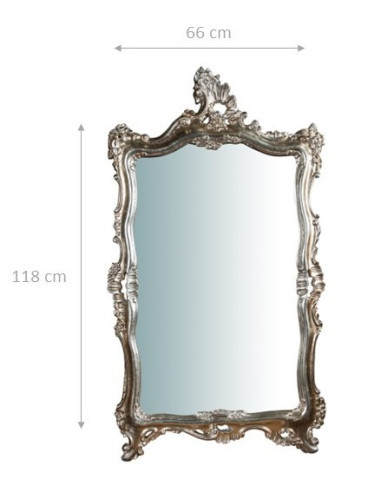 W66XDP7XH118 cm sized wood made antiqued silver finish wall mirror Carefully worked and finished by old Florentine craftsmen Easy application to enrich and furnish any living solution. Already fitted with hooks for fixing to the wall horizontally and vertically. Entirely made in Italy article