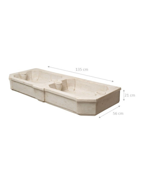 Completely hand-made marble bathtub of dimensions 135 cm width, 56 cm depth, 21 cm height, already provided with drainage hole. Made from a single block of marble, the characteristic nuances and veining of the material make it a unique piece. Ideal as an indoor or outdoor sink, but can also be used as a fountain basin. All measurements refer to the maximum overall dimensions of the article.