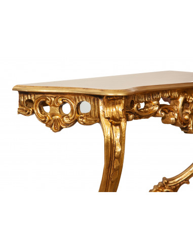 | Console of length 87 cm, depth 33 cm, height 84 cm made of gold finish wood. Carefully worked and finished by old Florentine artisans. Ideal to enrich and decorate any environment. Article entirely made in Italy. |