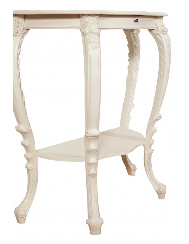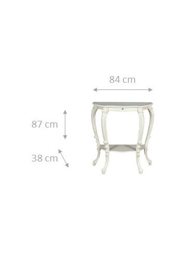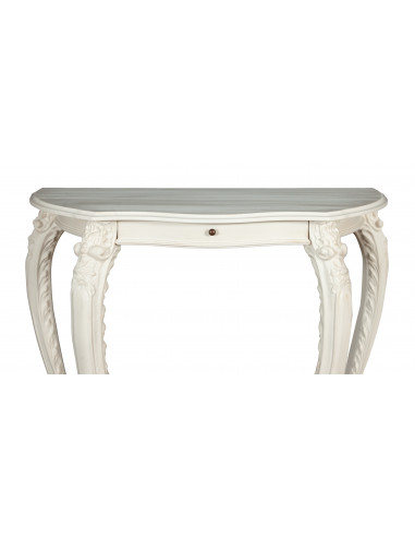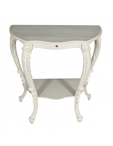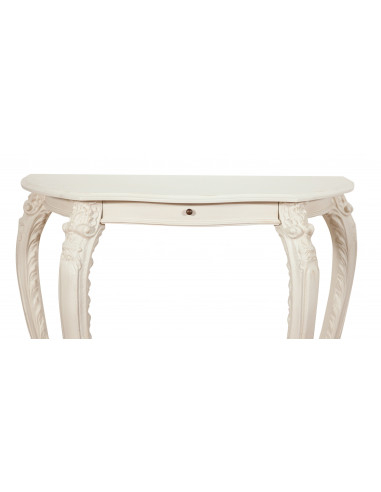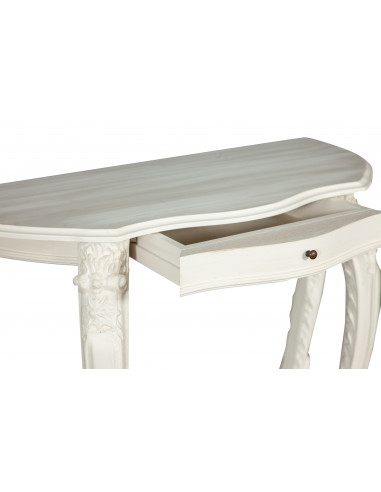 | Console of length 90 cm, depth 30 cm, height 87 cm made of withe antique finish wood. Carefully worked and finished by old Florentine artisans. Ideal to enrich and decorate any environment. Article entirely made in Italy. |