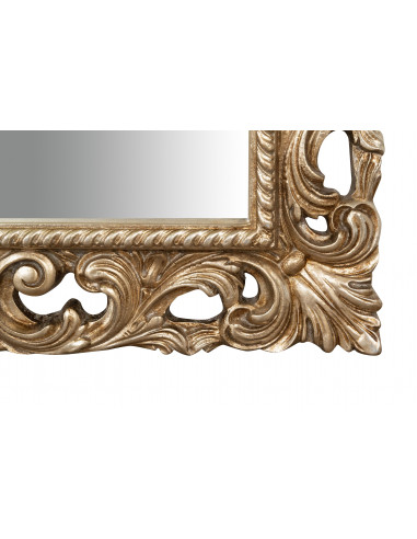 WOODEN WALL MIRROR WITH ANTIQUE SILVER LEAF FINISH MADE IN ITALY