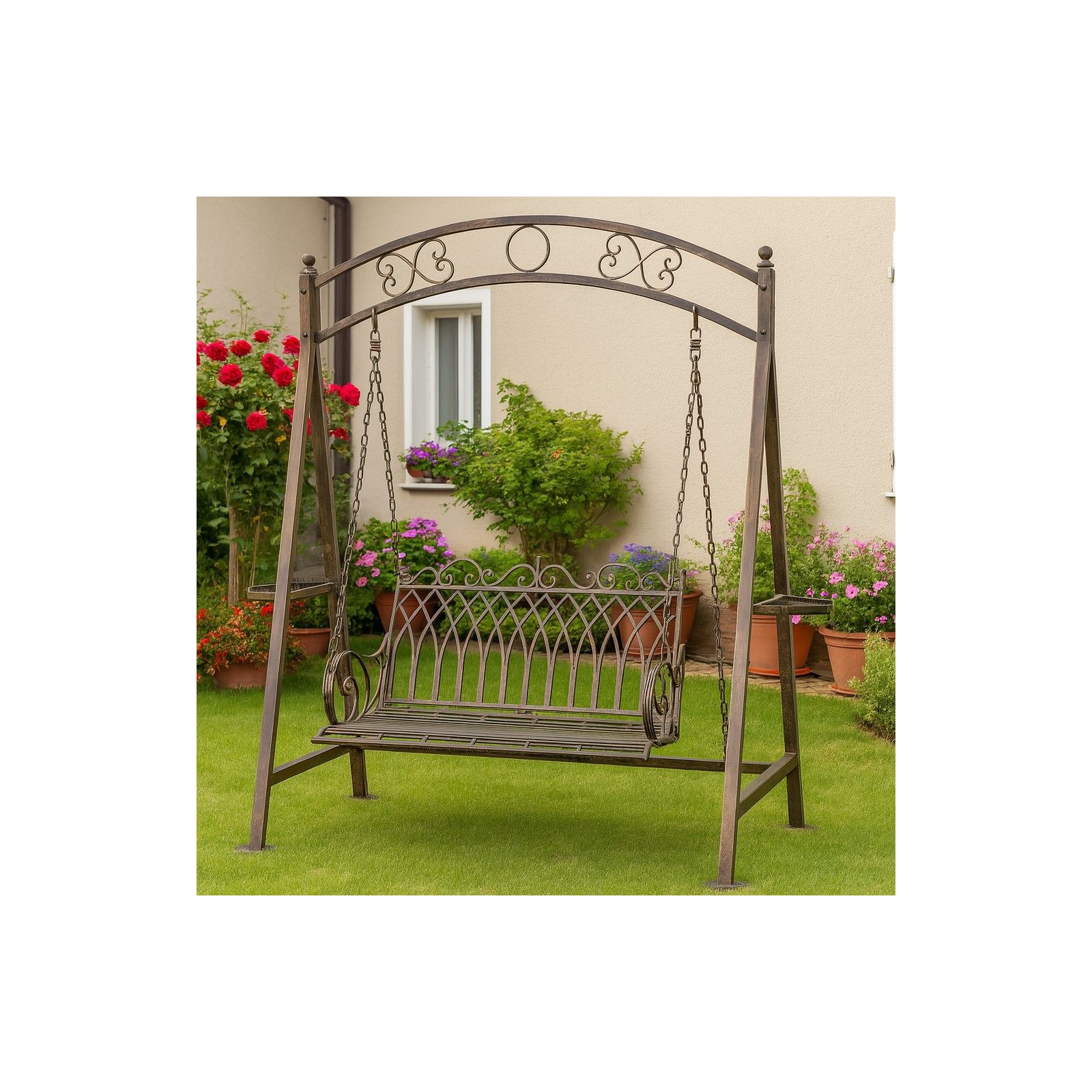 Wrought iron antique rust finish two-seater rocking chair Swing W198xDP100xH220 cm sized