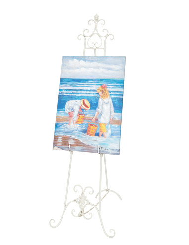 Elegant, practical and stable tripod picture stand, L53xW75xH150 cm, made of wrought iron. With attention to the smallest details, its versatility makes it ideal as a menu holder or for exhibitions, showcases and galleries.
