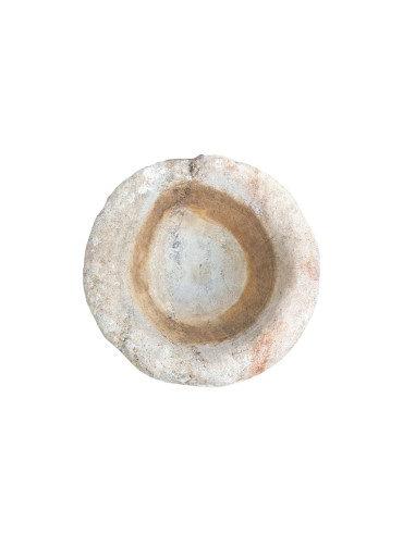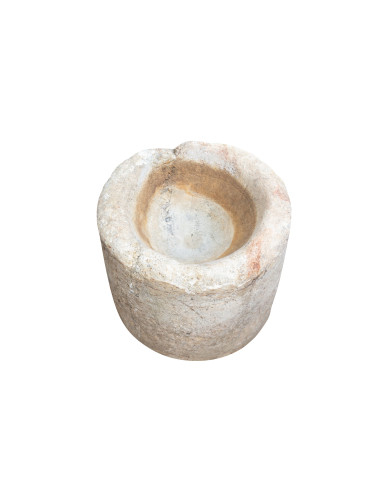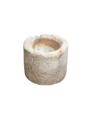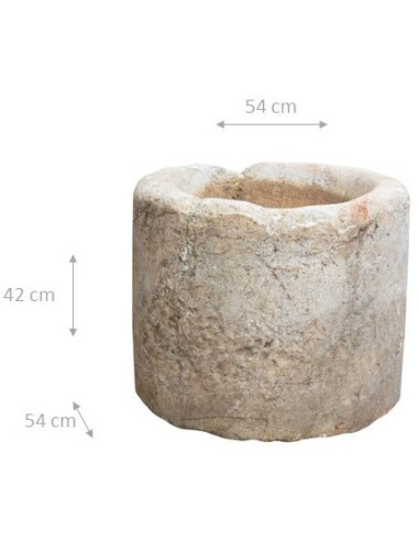 Mortero de piedra de dimensiones 54 cm de diámetro, 42 cm de altura, utilizado en la antigüedad para moler semillas.
