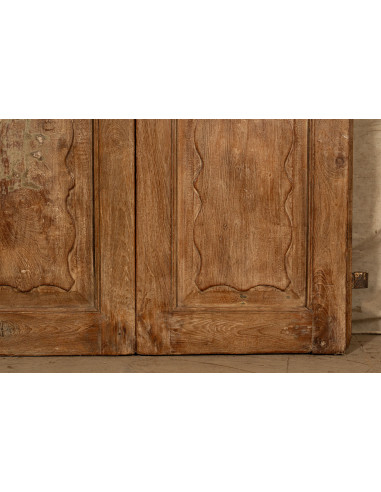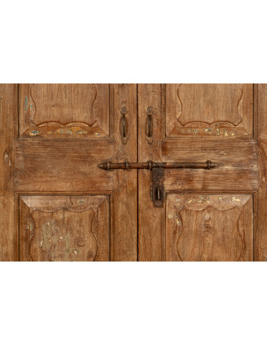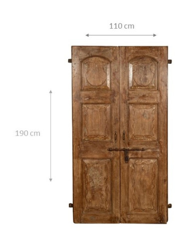 Puerta antigua de teca maciza de dimensiones 110 cm de longitud, 11 cm de profundidad y 190 cm de altura. Esta puerta procede de la demolición y restauración de importantes edificios antiguos. Finamente restaurada y tratada para su uso en exteriores, cada puerta es una pieza de verdadera antigüedad única. Todas las medidas se refieren a las dimensiones máximas totales del artículo.
