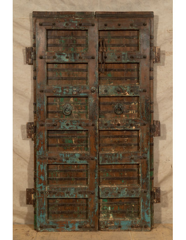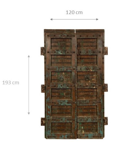 Puerta antigua de teca maciza de 120 cm de longitud, 11 cm de profundidad y 193 cm de altura. Esta puerta procede de la demolición y restauración de importantes edificios antiguos. Finamente restaurada y tratada para su uso en exteriores, cada puerta es una pieza de verdadera antigüedad única. Todas las medidas se refieren a las dimensiones máximas totales del artículo.