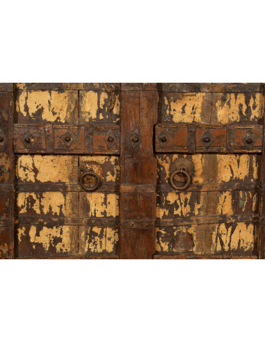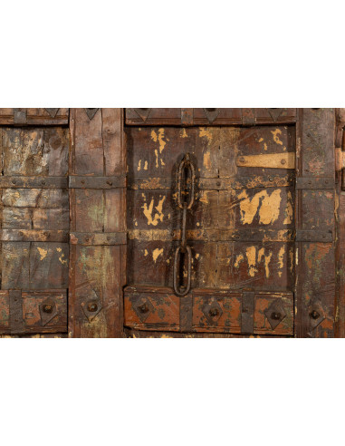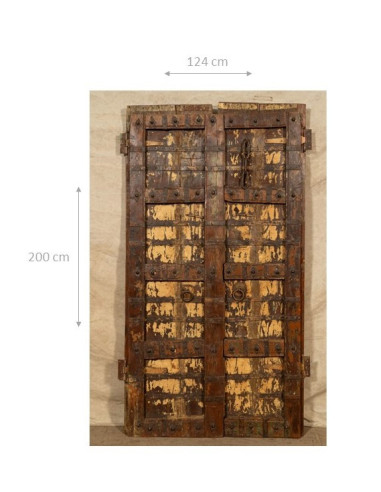 Puerta corredera medieval antigua interior o exterior de madera maciza y hierro