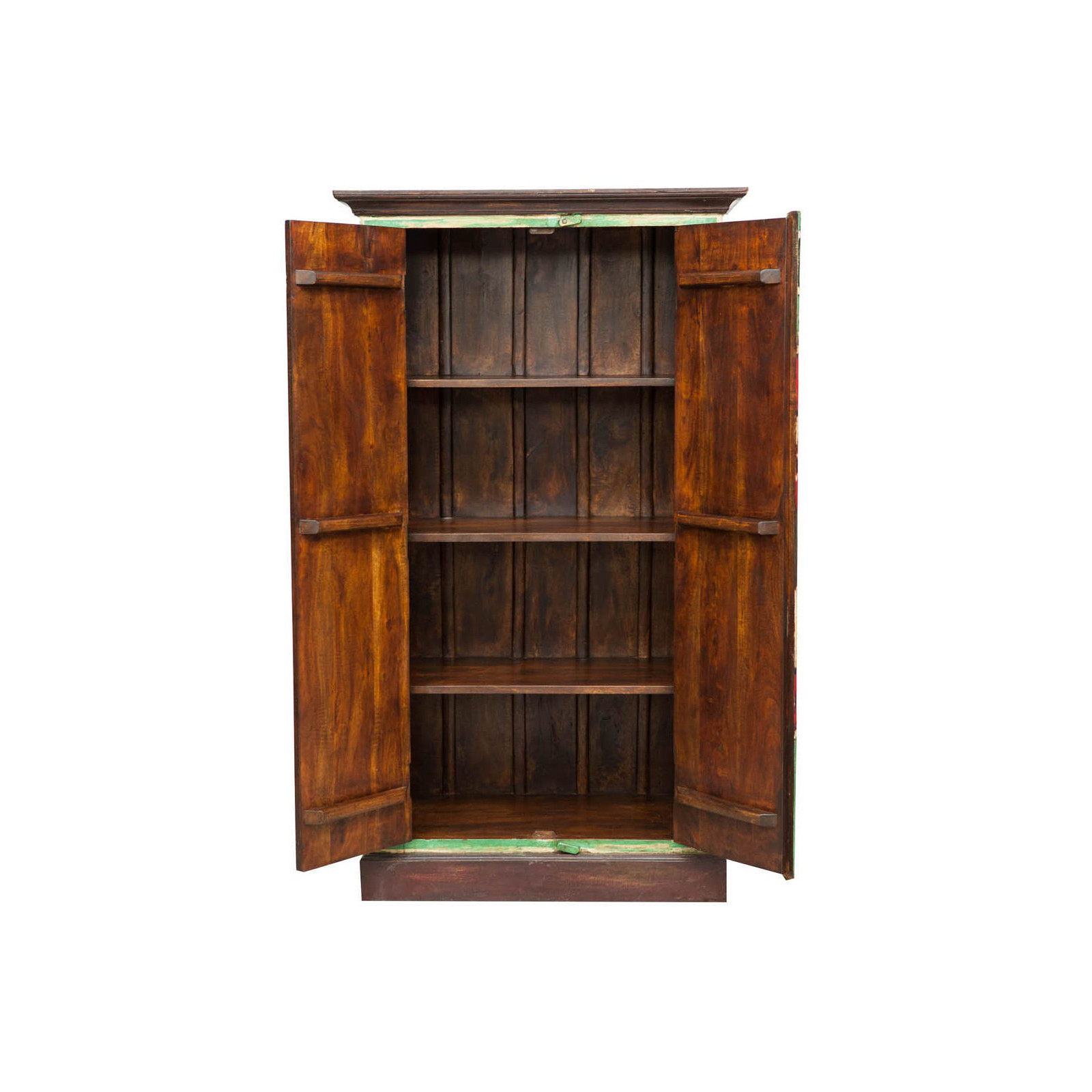 Sólido armario de taller , de estilo vintage de dimensiones L89xPR45xH158 cm hecha de madera maciza , cuidadosamente pintado a mano con efecto envejecido. Equipado con cuatro compartes amplios con su fuerte personalidad es el complemento perfecto para los amantes del estilo Industrial, con referencias al pasado.