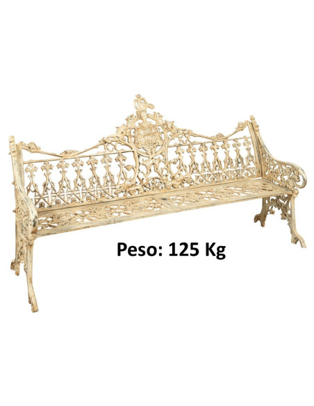 Banco muy robusto, estable y pesado fabricado en hierro fundido con unas dimensiones de 112 cm de ancho, 48 cm de profundidad y 89 cm de altura, con un cuidado acabado totalmente artesanal, consiguiendo un auténtico efecto envejecido. Elaborado meticulosamente, reproduce el diseño de los antiguos bancos ingleses y franceses del siglo XIX. Amuebla con...