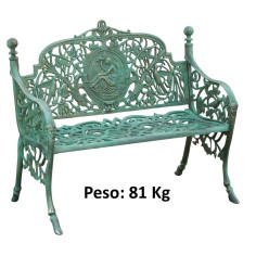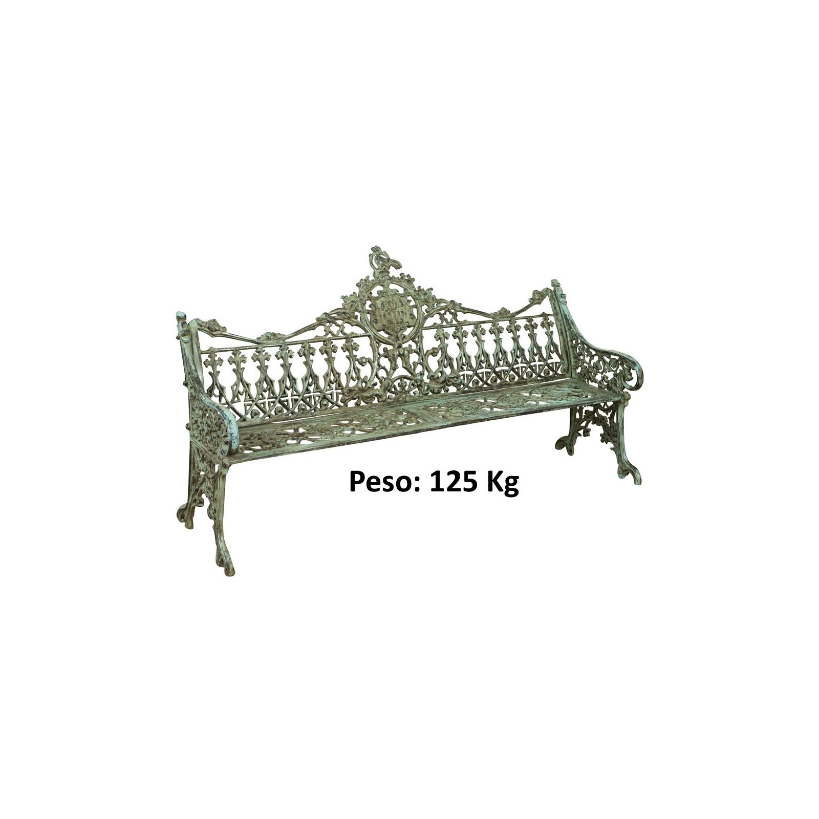 Banco robusto y estable fabricado en hierro fundido con unas dimensiones de 105 cm de ancho, 62 cm de profundidad y 90 cm de alto. Minuciosamente elaborado, reproduce el diseño de los antiguos bancos del siglo pasado. Al tratarse de acabados artesanales, el acabado puede no corresponder fielmente a las fotografías, presentando incluso partes con óxido...