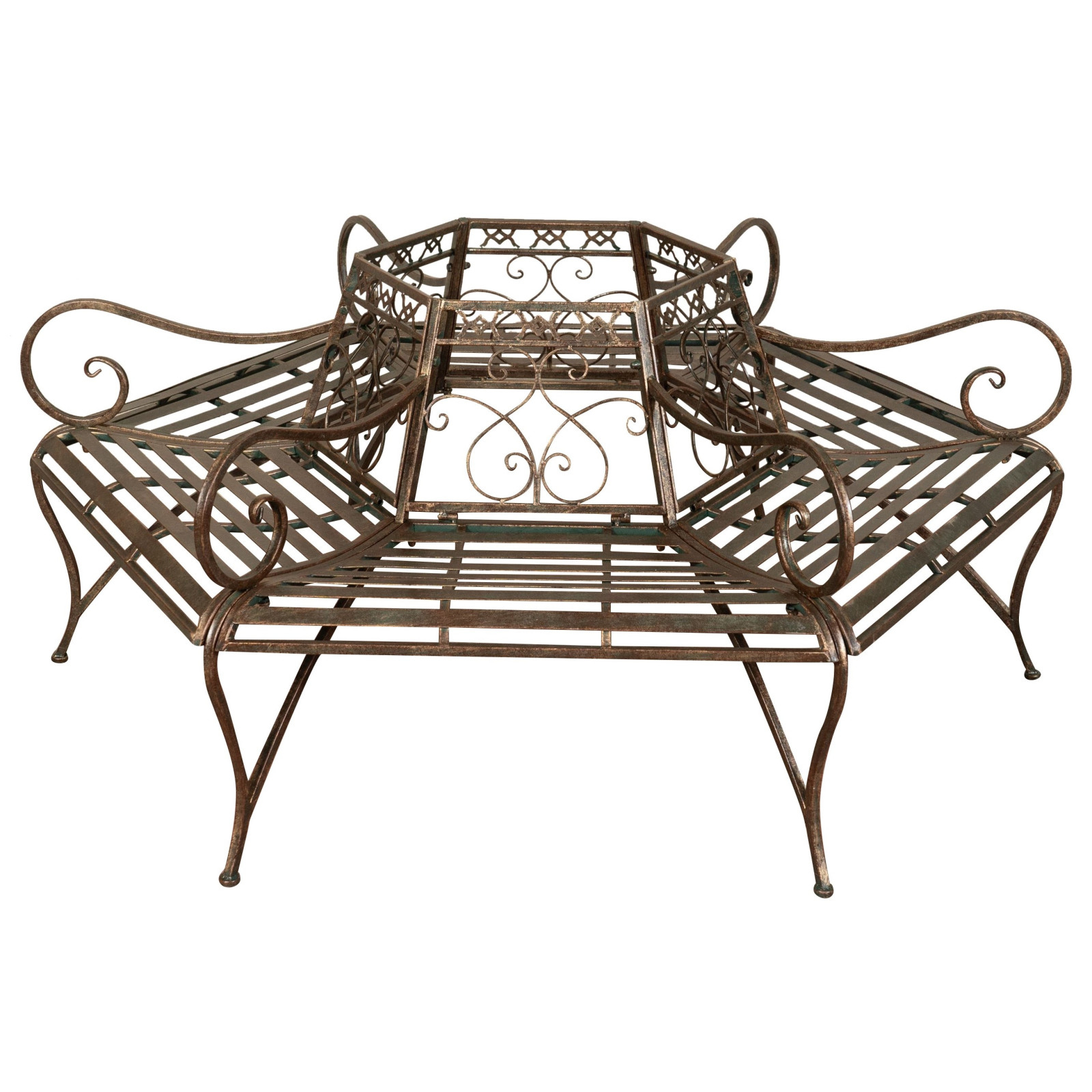 Banco Liberty con estructura de hierro forjado y acabado óxido envejecido L153xP153xH86 cm