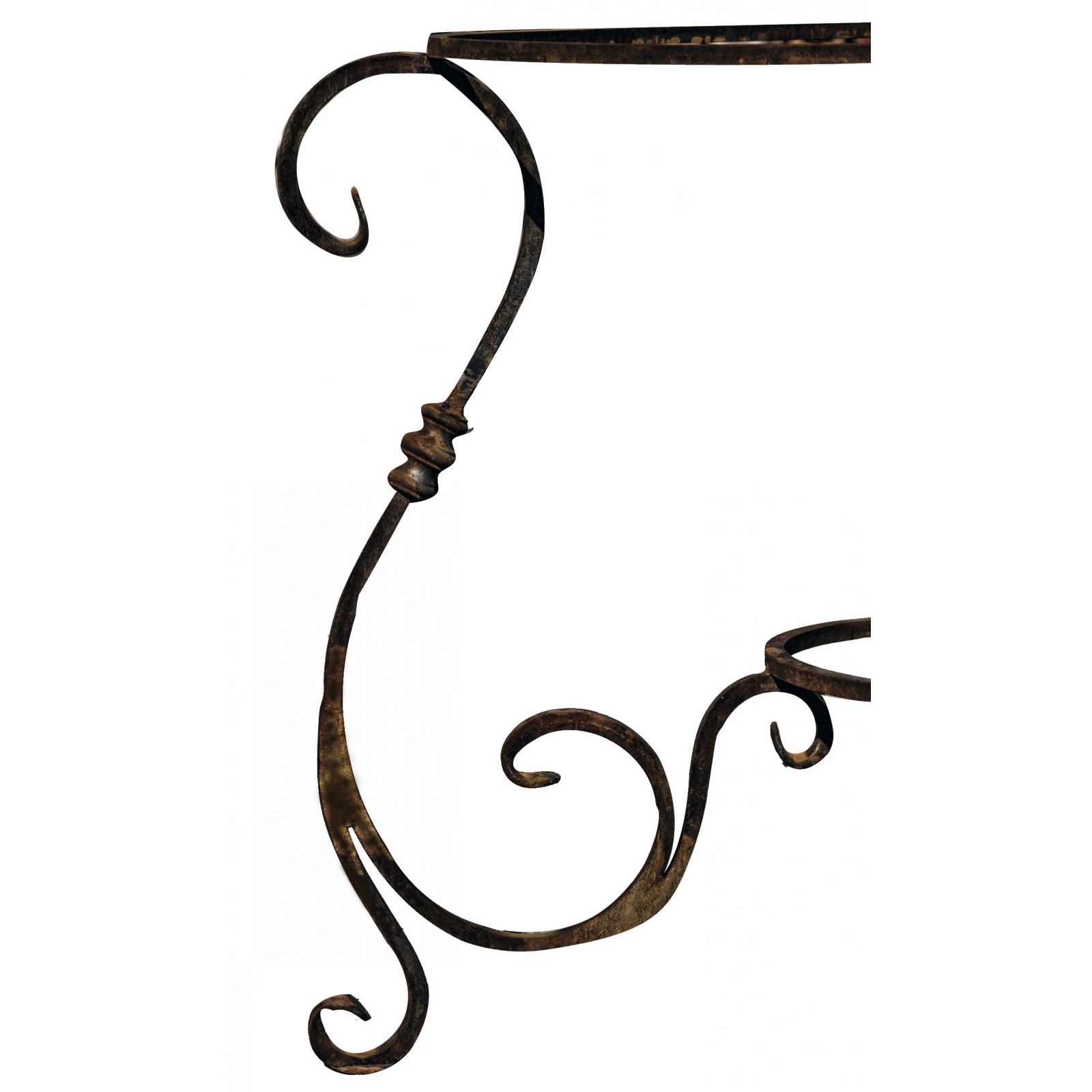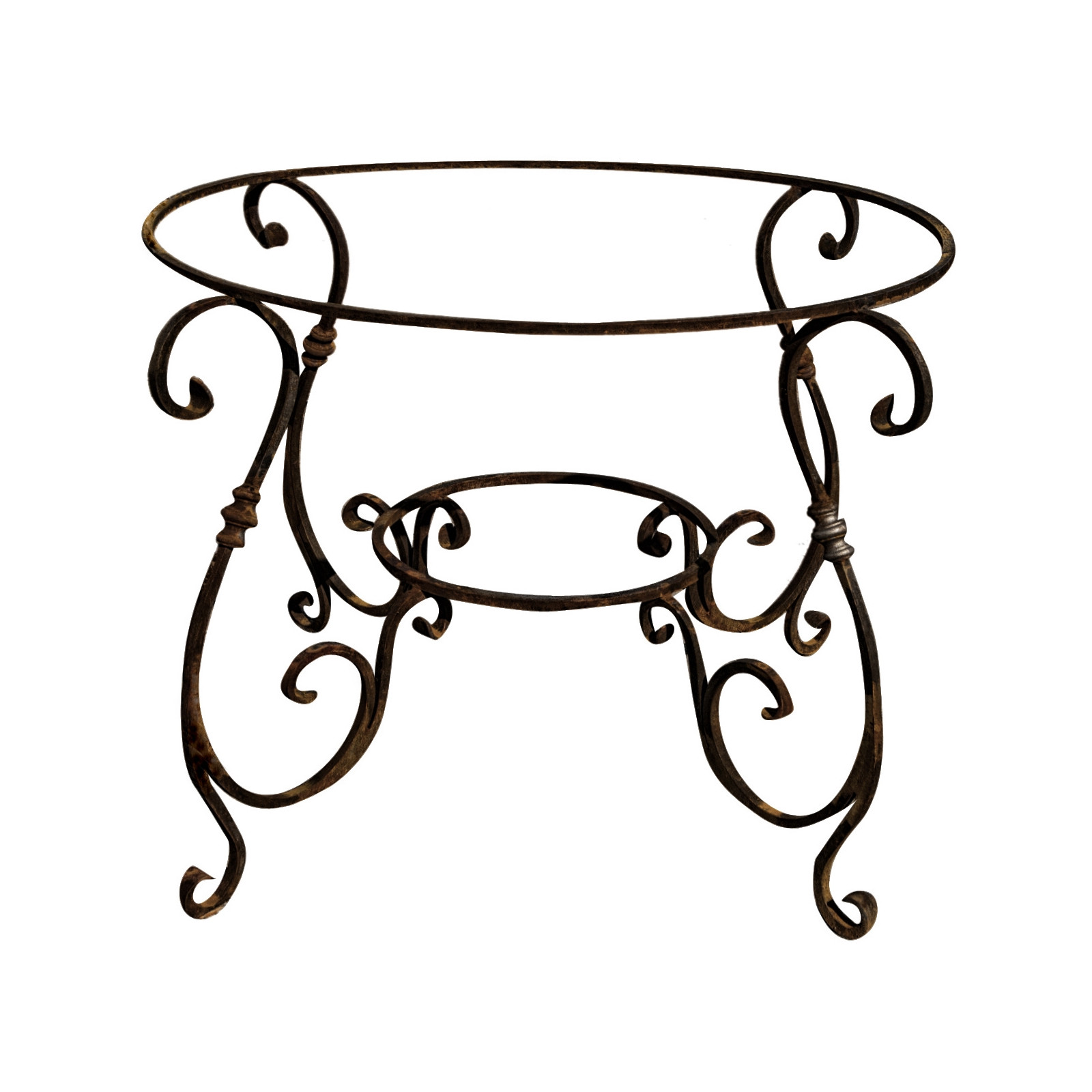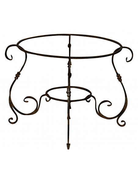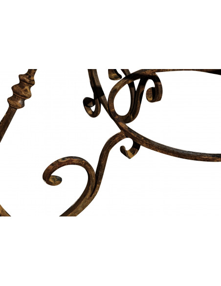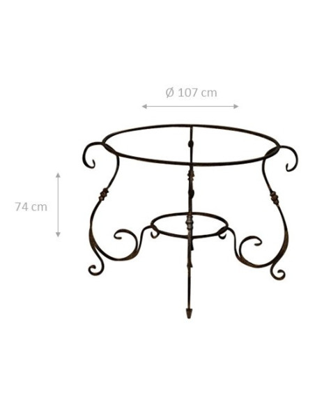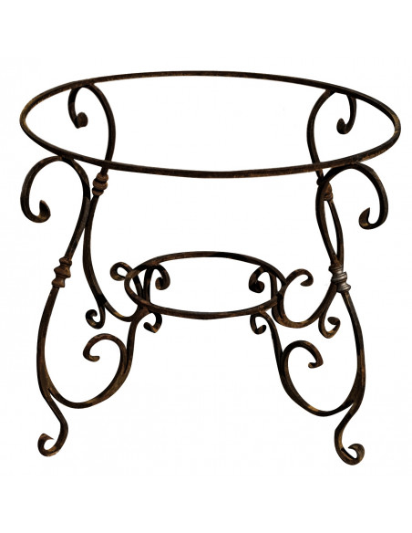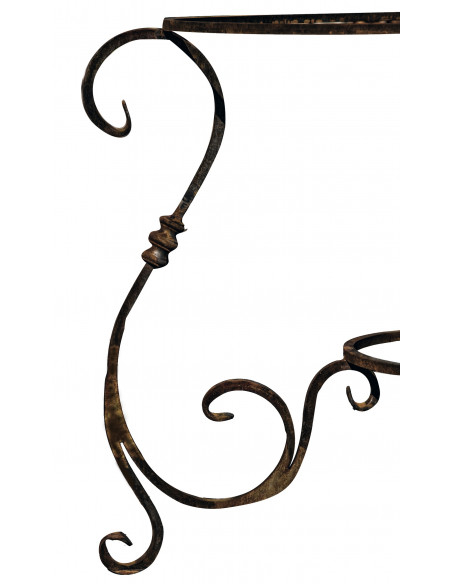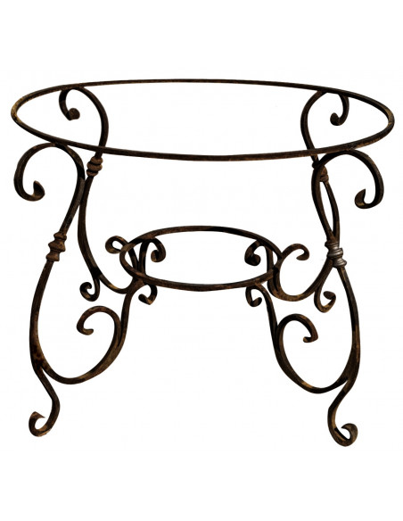 Base de mesa de hierro macizo forjado a mano, sin tratar. Estructura muy robusta y versátil, utilizable tanto en el interior como en el exterior, capaz de resistir incluso a los revestimientos muy pesados como el mármol, la piedra, etc.....Medidas: L107xPR107xH74 cm.