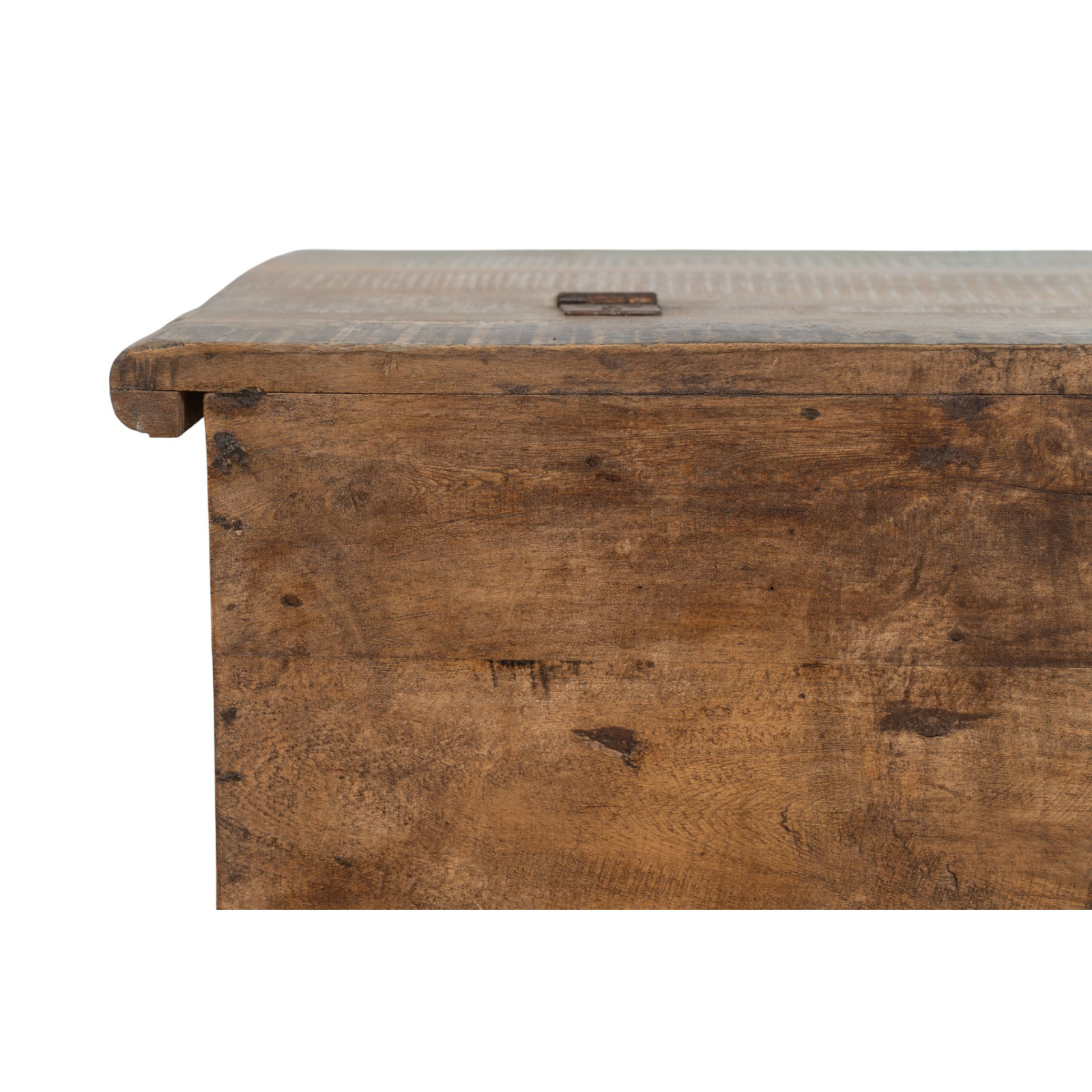 Baúl fabricado en madera maciza recuperada con unas dimensiones de 123 cm de ancho, 52 cm de profundidad y 54 cm de alto. Sólido y funcional, es ideal para los amantes de los muebles antiguos y la madera. Cada mueble es una pieza única.